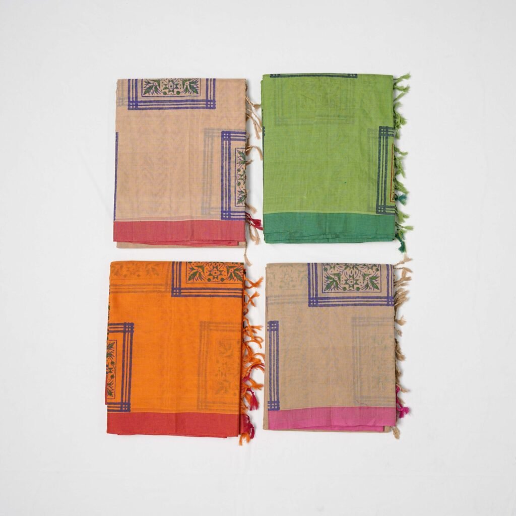 Hand Block Print Cotton Handloom Saree – Square Flower