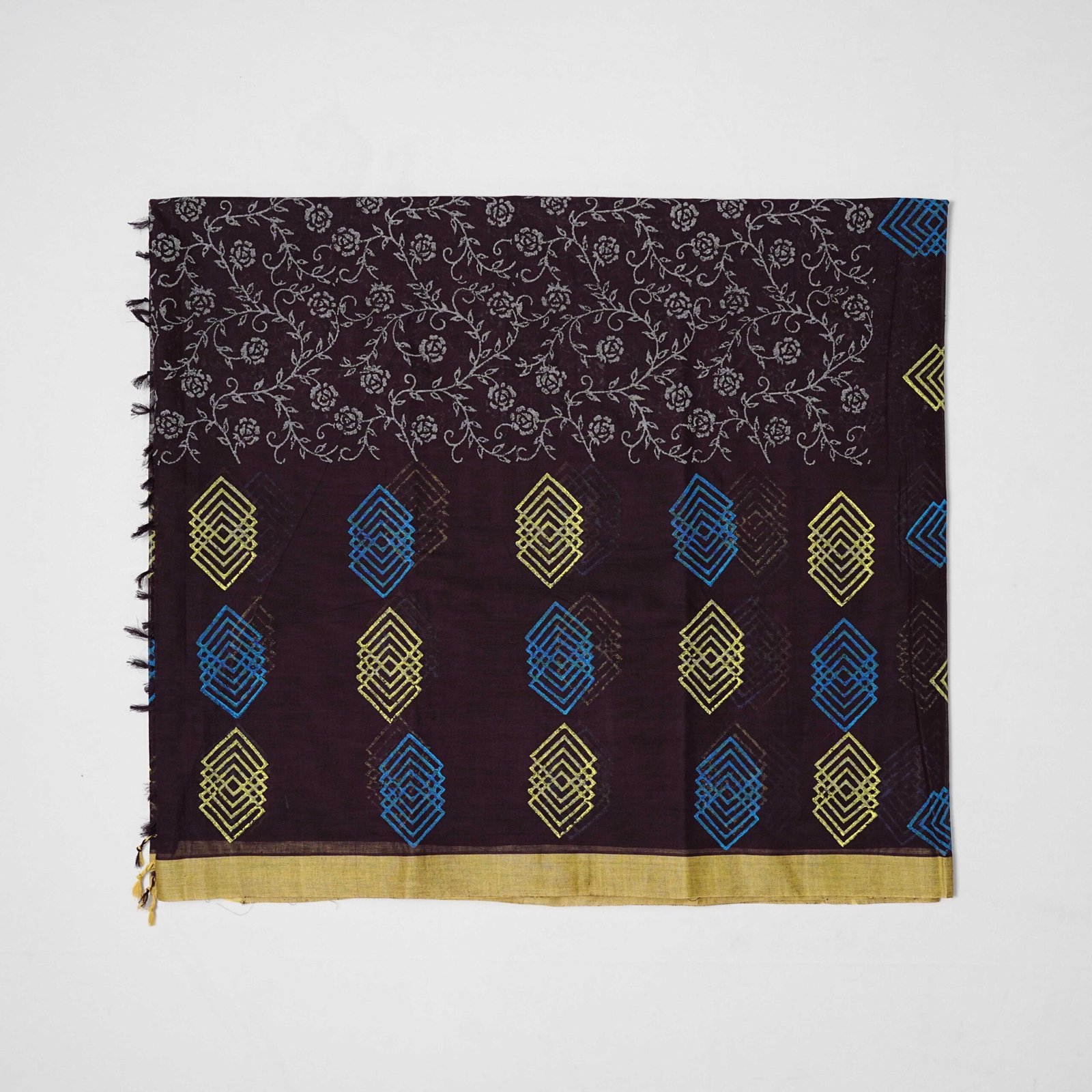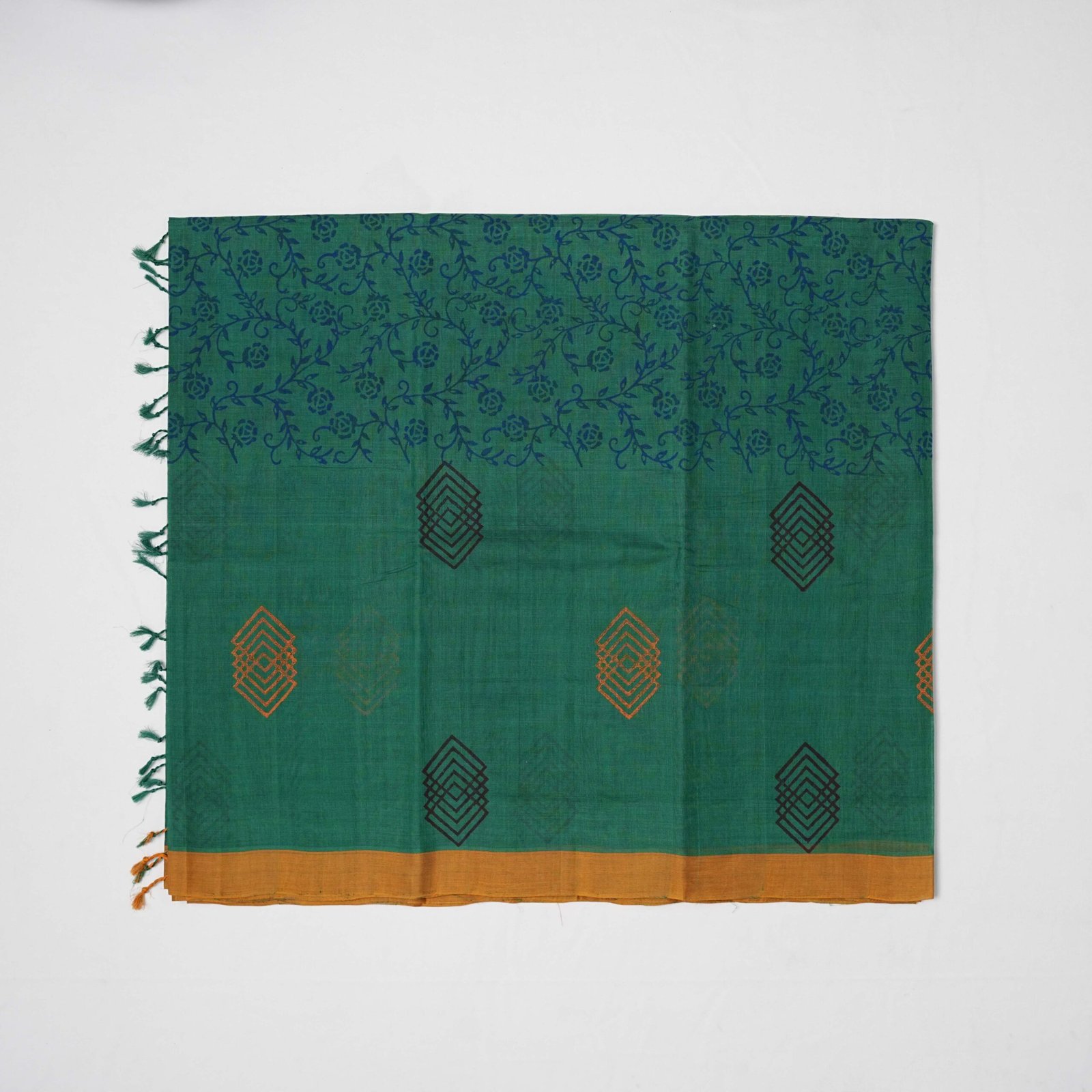 This Hand Block Print Cotton Handloom Saree from Nurpu Handlooms is woven on traditional hand looms using pure cotton yarn and printed by hand with natural motifs inspired by textile heritage.