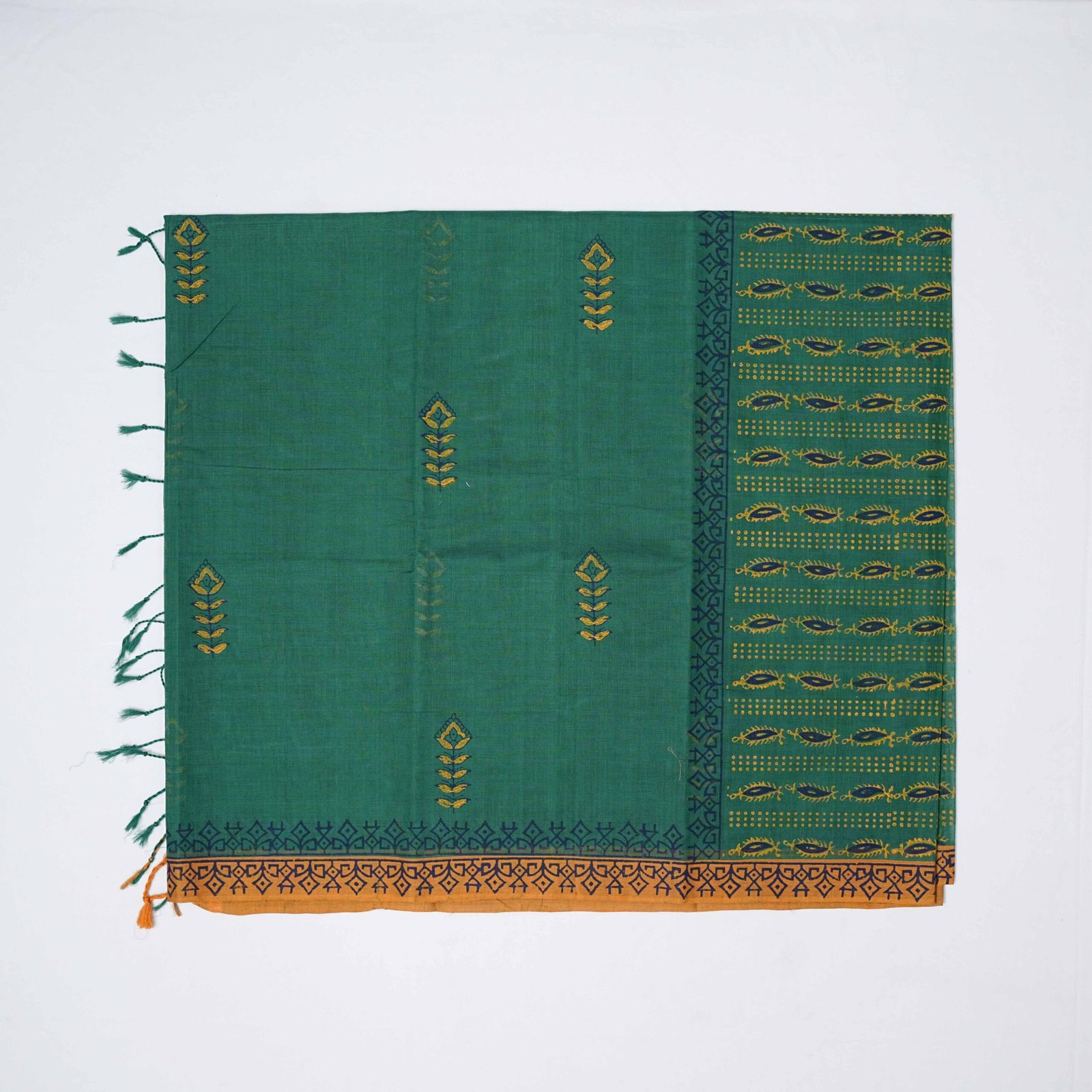 No two sarees are alike — minor variations in weave and print are part of the charm that celebrates human craft and natural beauty.