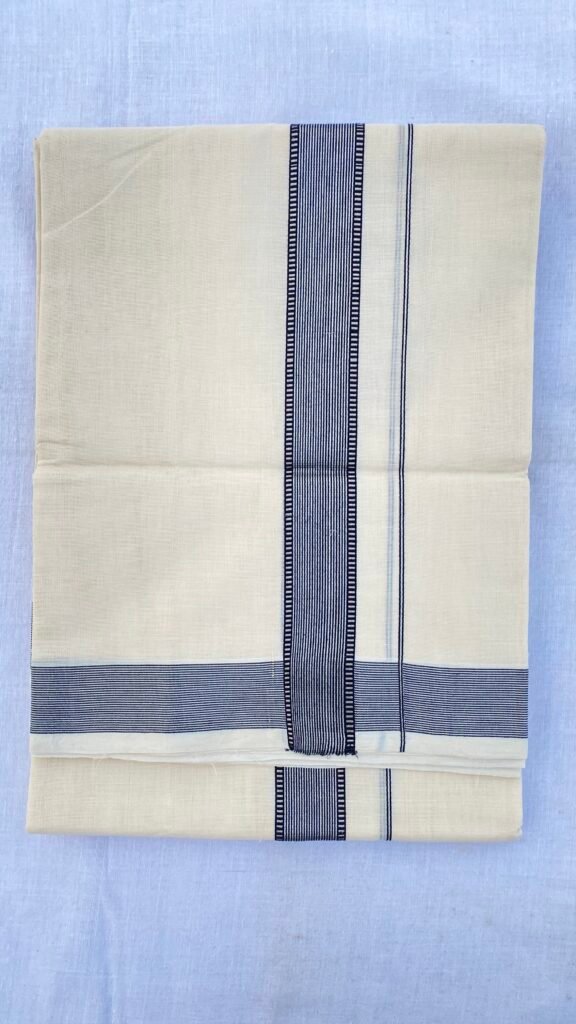 Premium Handwoven Thathaiyangarpet Dhoti -Dark Navy blue with Double side Gold Zari Border