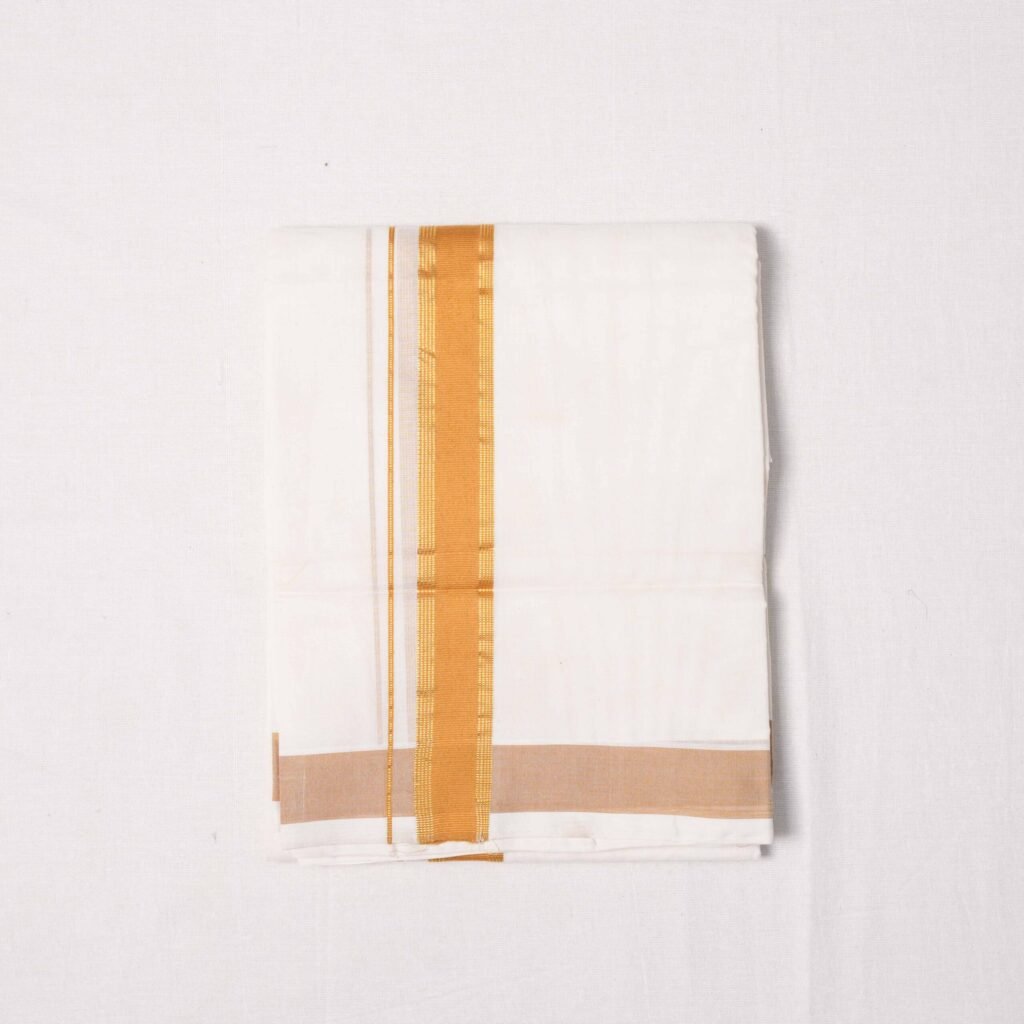 Premium Handwoven Thathaiyangarpet Dhoti -Sandel Border with Double side Gold Zari Border